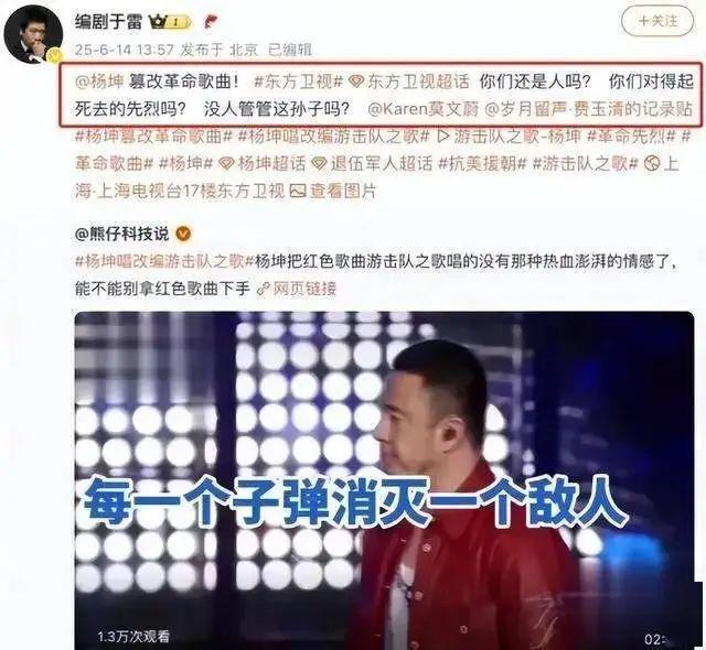 当时并未引起太大反响,但八年后,编剧于雷再次提起此事,并在社交媒体上激烈质问:“怎么回事?你们对得起死去的先烈吗?没人管管吗?”他指责杨坤篡改经典,是对先烈的不敬。于雷的发声迅速引发广泛关注和讨论,舆论呈现两极分化。