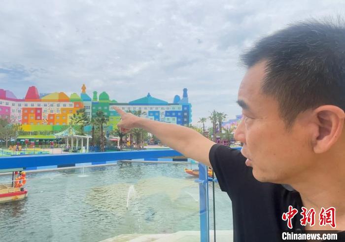 不远处是上海乐高乐园酒店,其屋顶上有各种形状与色彩的“隐藏款信号积木”。中新网记者 郑莹莹 摄