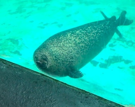 海豹真的太Q弹软糯了 撞玻璃直接把自己撞扁了