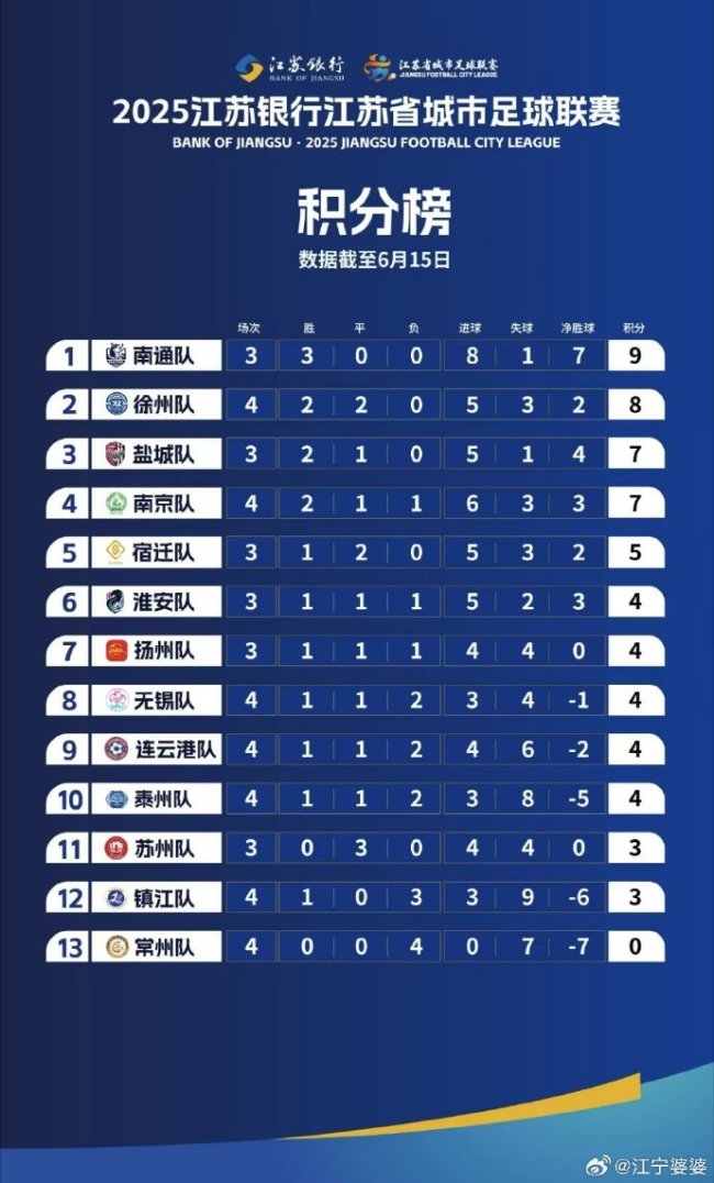 昨天两场平局,南京淮安扬州泰州各积一分,三省省会南京痛失夺回“南哥”称号的宝贵机会