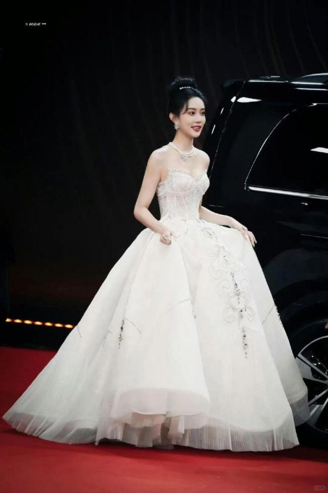 孟子义此次的造型延续了她近年来的“高级感”路线。裸色丝绸长裙以流动的褶皱设计勾勒出曼妙身形,腰间点缀的珍珠腰链呼应了她古典温婉的气质。而手腕处的医用胶布,被网友解读为“打破完美的人性化设计”——既保留了造型的纯净感,又以细微的“瑕疵”传递出真实与坚韧。这种“不完美中的完美”恰如其分地契合了她近期在影视作品中塑造的“破碎美学”角色,如《九重紫》中隐忍悲情的窦昭。