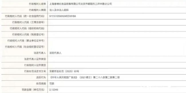 今年2月,北京朝阳区市场监管局对一门店处以2.1万元罚款,原因是广告中宣称产品具有“抗老”功效,但实际并未获得相关认证。事后,品牌创始人孙来春通过微博道歉,承诺加强内部管理并排查宣传合规性。