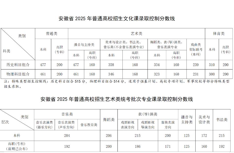 普通类历史:本科438分,专科180分;特殊类型资格线515分。