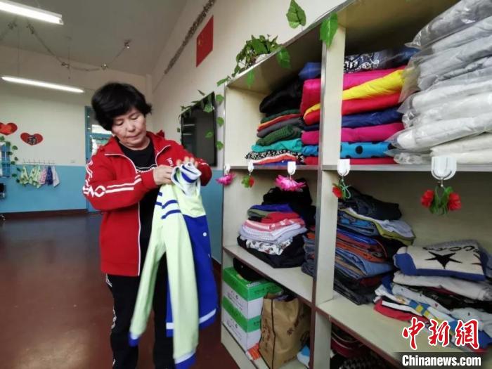 吾吉整理捐赠的衣物。张晓敏 摄