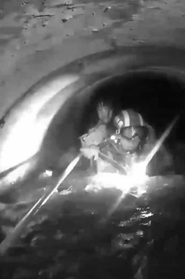 剑河县消防救援大队火速赶赴现场,首先对排水沟入水口进行排查,但未发现被困小女孩的踪迹,且该处不具备救援条件。指挥员决定对入水口至出水口之间的所有井盖进行全面排查。经过仔细搜寻,在新城加油站附近的下水道处,发现此处具备救援条件。一名消防员做好安全防护措施后,进入下水道逐一排查。最终,在下水沟大约10多米处发现了小女孩,她正紧紧抱住一根木桩,横跨在管道中间,意识清醒。