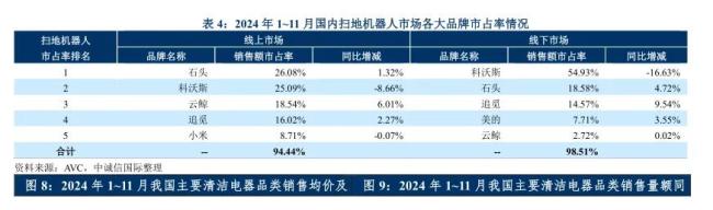 无序扩张的背后,是清洁家电市场的激烈竞争和内卷。据奥维云网(AVC)数据显示,2024年1-11月国内扫地机器人市场以销售额计算,追觅线上市场份额约为16.02%,同比增加2.27%,位列第四;线下市场份额约为14.57%,同比增长9.54%,位列第三。虽然仍保持了增长(尤其是线下市场),但不难看出清洁家电市场同样是处于饱和的状态,毕竟整个市场就那么大,僧多粥少。