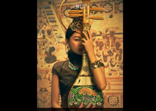 辛芷蕾身穿少数民族服饰。辛芷蕾眼神犀利。辛芷蕾漫步敦煌戈壁。辛芷蕾别样生姿。辛芷蕾欣赏日落美景。辛芷蕾手抚琵琶。辛芷蕾神秘感十足。