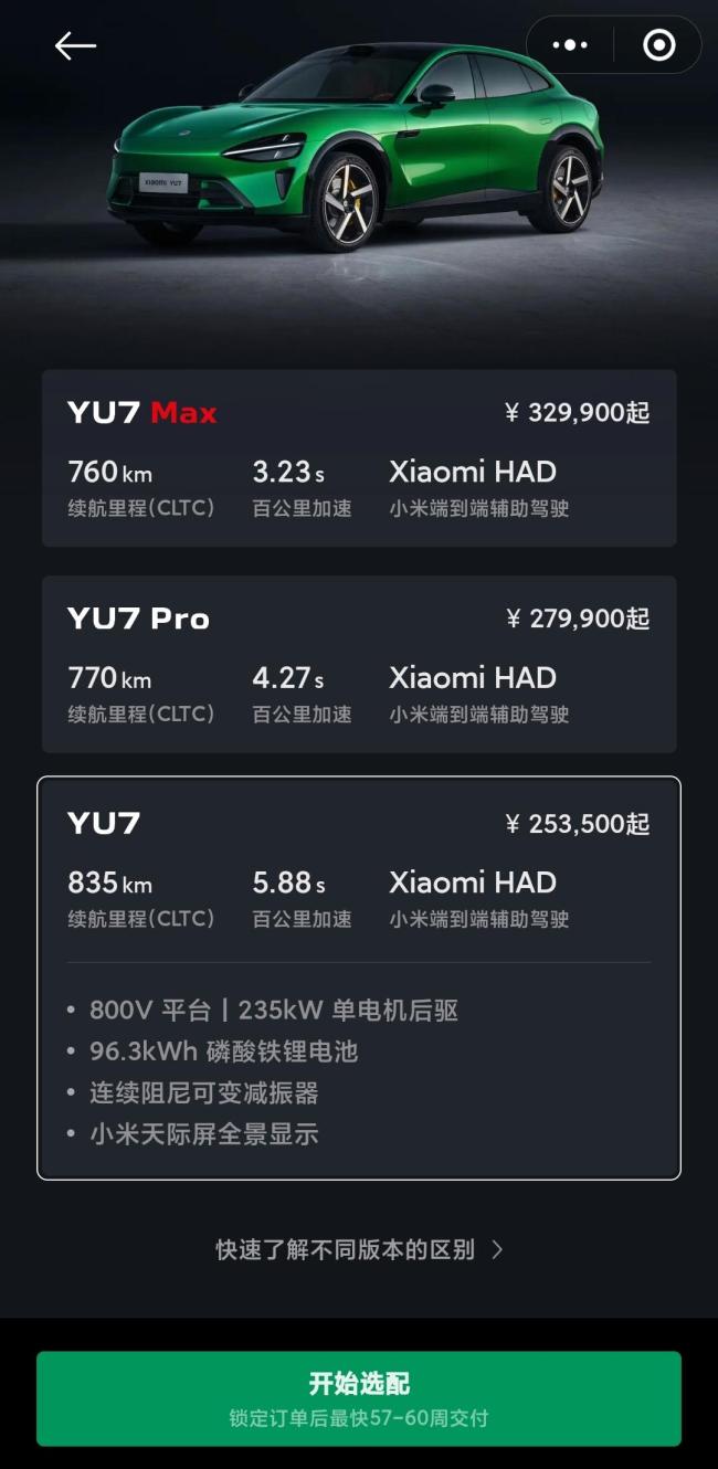小米YU7上市18小时内锁单量达到24万辆,这一成绩再度引发了外界对其产能的担忧。根据小米汽车订购页面显示,标准版YU7锁单后最快需等待57-60周才能交付,Pro版则为50-53周,Max版则是37-40周。漫长的等待时间让部分用户产生了退订的想法,但小米汽车明确表示锁单后定金不予退还。