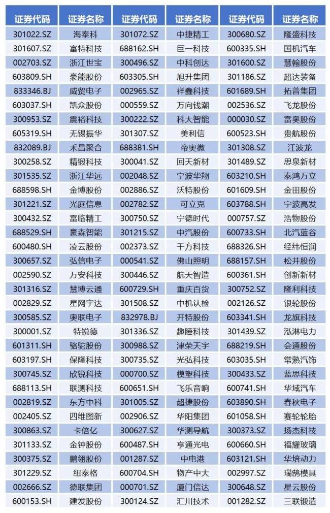 从行业分布看,根据申万二级行业分类,汽车零部件有45家,占比44.1%;电池、消费电子各有5家,占比4.9%;汽车服务、专用设备各有4家,占比3.9%。