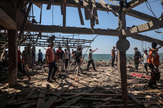 6月30日,人们在加沙城沿海地区查看遭袭的咖啡馆。新华社发(里泽克·阿卜杜勒贾瓦德摄)
