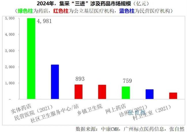 集采“三进”共涉及药品市场规模10625亿元,上述民营医疗机构和村卫生室都是2021年的数据,2024年的销售额还要大些。(详见下图)