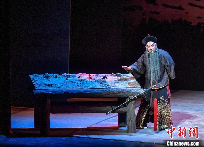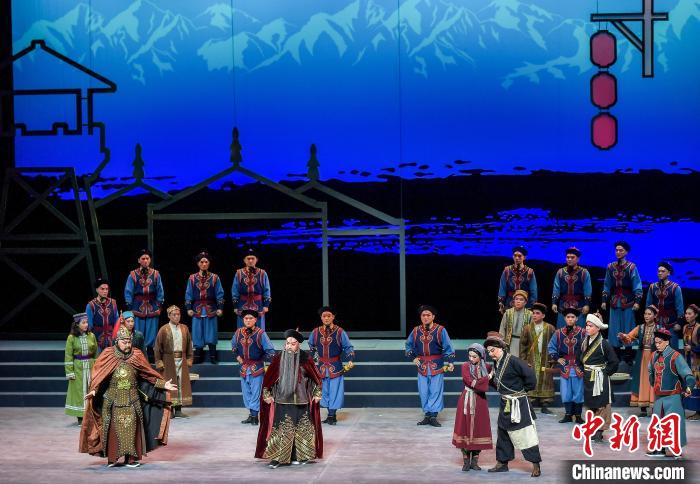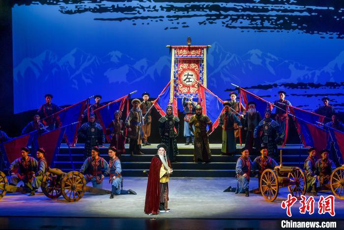 7月6日晚,新编历史京剧《故土新归》在乌鲁木齐京剧院首演。该剧由国家京剧院与乌鲁木齐市京剧团(新疆京剧团)历时两年联合创排,演绎了清末名臣左宗棠力挽狂澜、力排众议、“抬棺西征”,最终收复新疆的历史壮举。中新社记者 刘新 摄