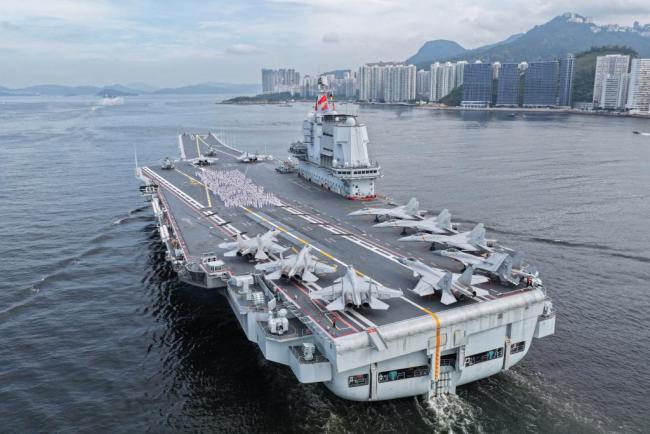 7月3日,中国海军山东舰航母编队抵达香港。这是山东舰首次赴港访问,也是继辽宁舰后中国海军航空母舰第二次访港。由山东舰、导弹驱逐舰延安舰、湛江舰及导弹护卫舰运城舰组成的航母编队于3日上午抵达香港特别行政区,开启为期5天的访问活动。巨舰破浪而来,气势磅礴,“航母热”燃爆香江。香港各界人士表示,此次访问不仅是一场展现国家军事现代化成就的视觉盛宴,更凝聚了香港与内地的血脉亲情。
