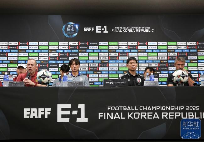 7月6日,2025年东亚足联E-1足球锦标赛(东亚杯)赛前新闻发布会在韩国龙仁举行。本届东亚杯将于7月7日至16日进行,中国队将在7日的揭幕战中对阵东道主韩国队。
