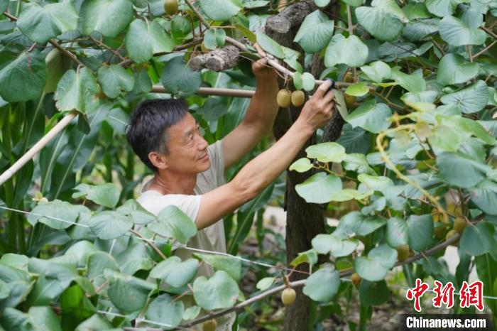 民众在猕猴桃和玉米套种田里开展夏季管护。陈争强 摄