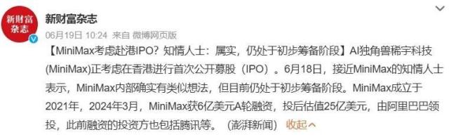 就在MiniMax“疯狂上新”的同时,市场上传出了其拟赴港IPO的消息,这也让MiniMax成了智谱AI之后第二家“AI六小虎”中传出冲刺上市的公司;不过,目前公司对此没有相关回应。