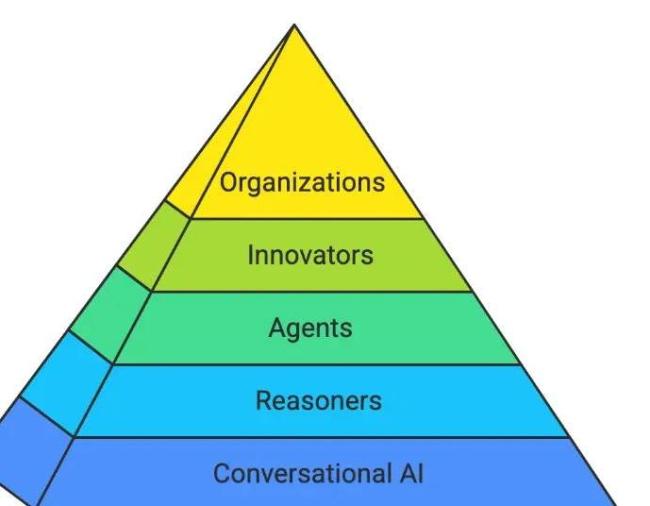 OpenAI似乎给出了这个问题的答案范本,其此前公布了AGI五级路线图,揭示了人工智能从"聊天工具"到"战略指挥官"的完整进化路径。简单来说,第一阶段AI只是一个会“说人话”的对话工具,不需要刻意的编程语言就可以交流;第二阶段AI变成一个颇有学识的“博士”,反应和产出更准确、更快速;第三阶段AI成了一个超级助手,不止可以“chat”还可以“act”,从这里再往上AI就不仅仅是一个被操控的工具,更可以提出创意甚至管理一个跨国公司。