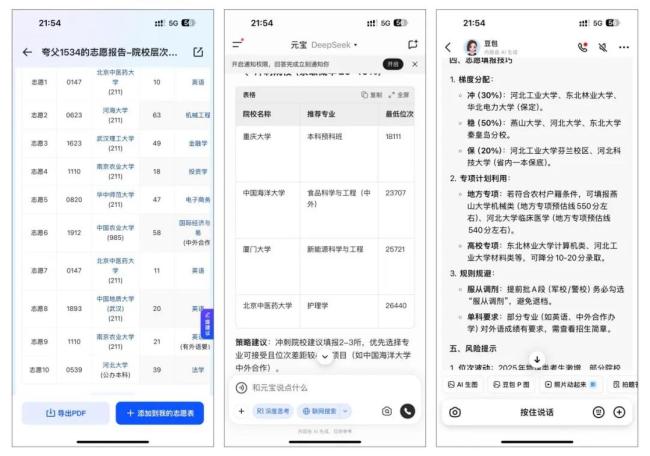 但豆包和元宝在信息丰富度上不如夸克,比如夸克给出的“冲、稳、保”院校合计96所,豆包则只给出9所,元宝为10所。