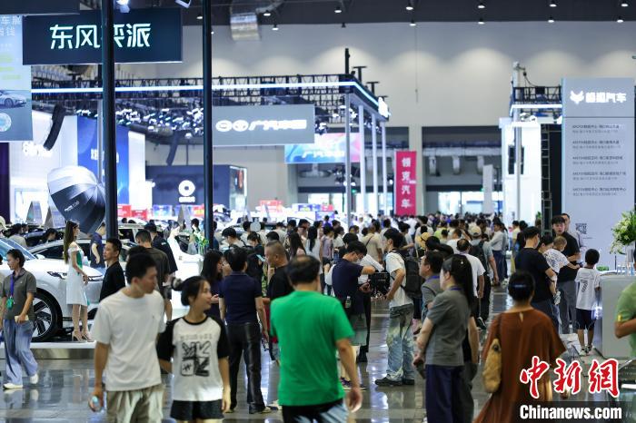 7月10日,2025海南国际汽车博览会暨第七届海南国际新能源汽车展在海口开幕。本届车展汇聚近四十个国内外知名汽车品牌,数百款热门车型同台竞技。图为车展吸引众多民众参观。中新社记者 骆云飞 摄