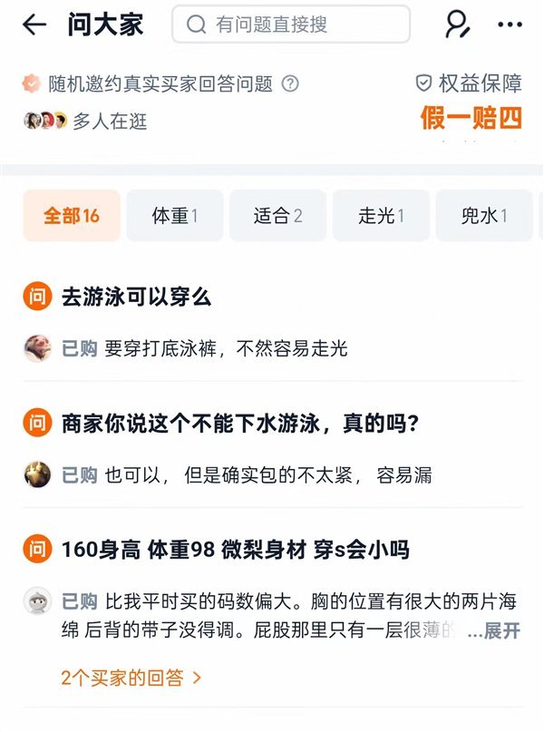 消费者对这一解释并不满意,认为如果泳衣不适合游泳,商家应在商品详情页面进行明显的提醒和标注。在某电商平台上,这款泳衣售价超过200元,评论区也有不少买家反映穿它游泳会出现走光问题。不过,商品标题和详情页均未对此作出说明。