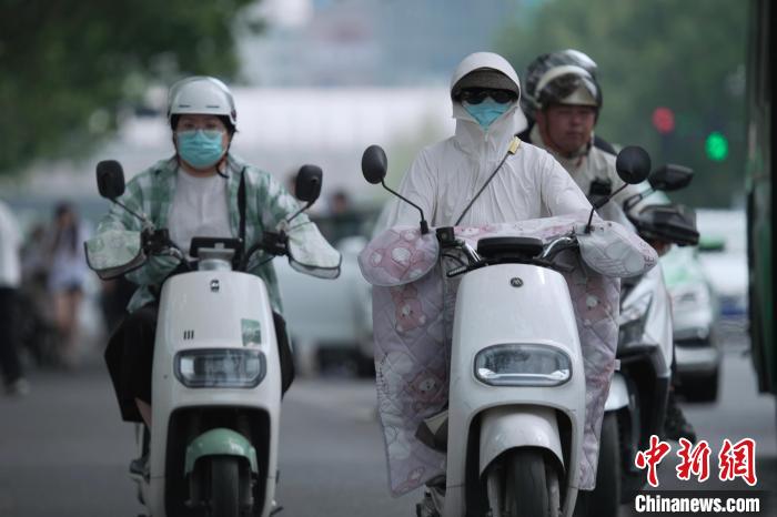 7月14日,河南郑州市民“全副武装”出行。中新社记者 李超庆 摄
