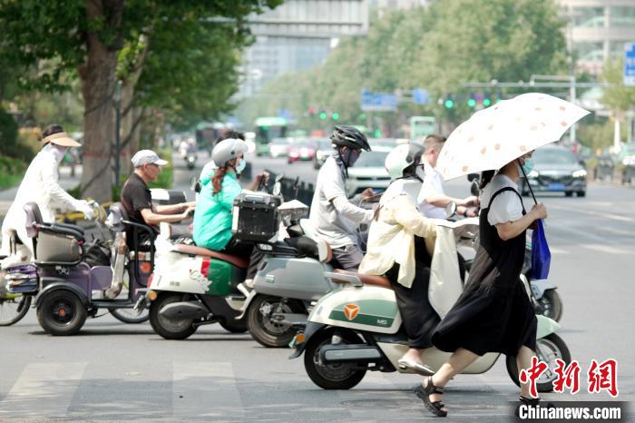 7月14日,河南郑州市民高温出行。中新社记者 李超庆 摄