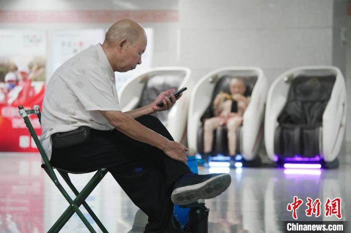 7月14日,河南郑州市民在地铁纳凉处休闲。中新社记者 李超庆 摄