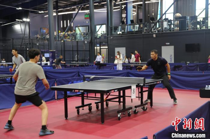 当地时间7月13日,哈萨克斯坦阿拉木图,图为“乒乓碰”媒体友谊球赛活动现场。中国驻阿拉木图总领馆 供图