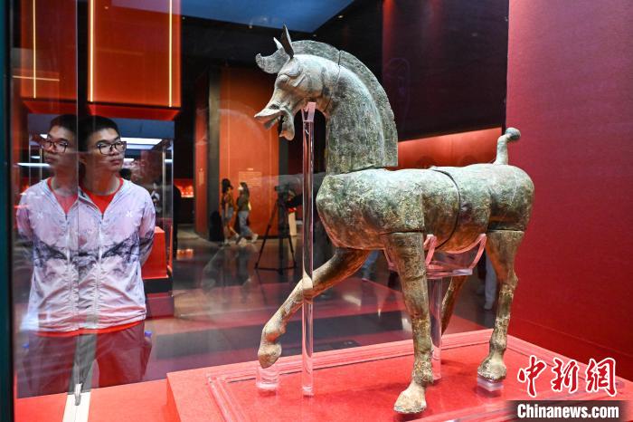 7月15日,云南昆明,东汉时期的“铜马”吸引观众。中新社记者 李嘉娴 摄