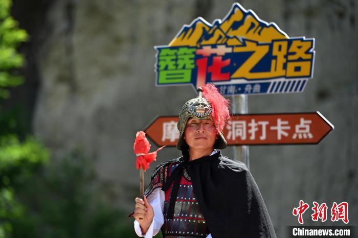 图为7月13日,“簪花之路”途经的三国摩崖石洞景点打卡处。九美旦增 摄