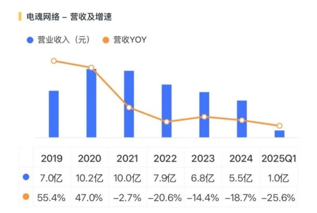 但从那以后,2021年以来,电魂网络的营收、利润已连续下滑4年多。