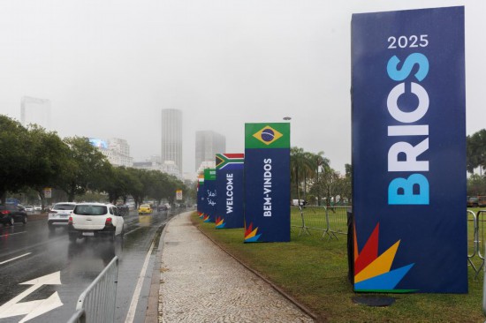 这是7月3日在巴西里约热内卢拍摄的金砖国家领导人第十七次会晤欢迎标语牌。新华社发(克劳迪娅·马尔提尼摄)