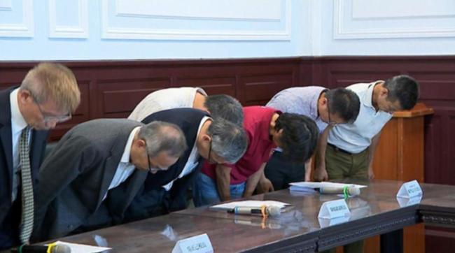 7月19日,包括周台英和台师大校长在内的13名主管负责人在记者会上鞠躬道歉。