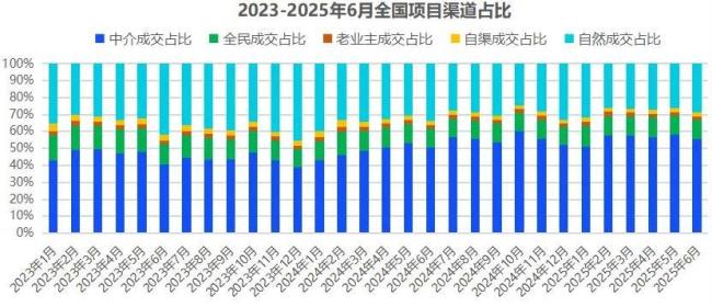 从上半年的数据看,与24年同期相比,中介带客涨幅约5%,且一直居高不下,而相对应的自然成交同比下滑5.1%,可见中介绑架的局面仍在不断扩大。
