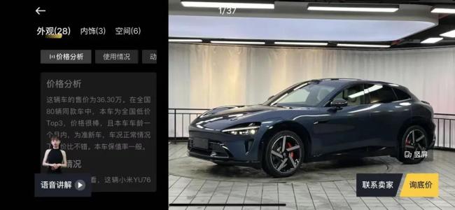 目前市场上流通的二手小米YU7大多为Max版本,虽然平台上二手车定价高低不同,但从全国各地车商的报价来看,基本是在原有配置上加价1万~2万,且车子都是在百公里以内的准新车。