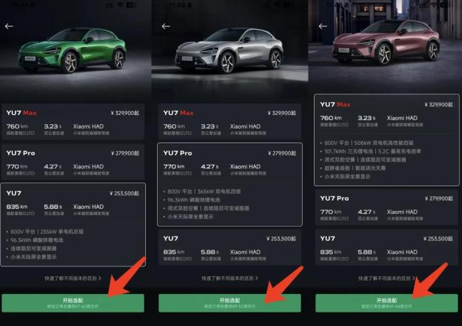 另一位车商告诉记者:“鎏金粉比较稀有,我这款卖37.8万元,在原价基础上贵了1.6万元。当然你也可以选择等,但现在定最快也要年前才能提上,有客户不想等大半年的交付周期,直接加1万多买现车,对他们来说时间比钱更重要。”可以看到的是,部分急于提车的消费者愿意为YU7支付更高溢价。