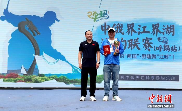 中俄界江界湖游钓联赛(呼玛站)优胜者获颁奖杯及证书。郭智铭 摄