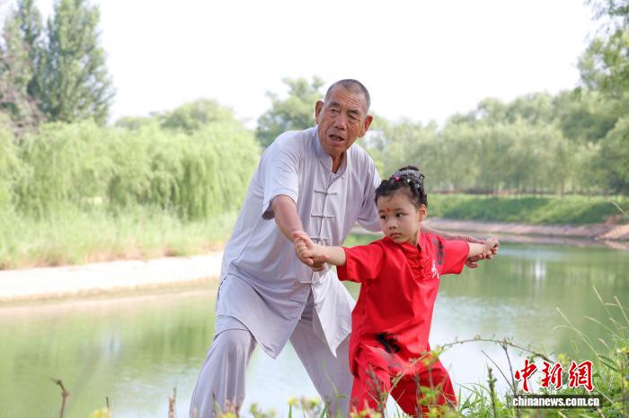 图为7月24日,武术老师在大运河畔指导沧县曹庄子小学学生练习传统武术。田博 摄