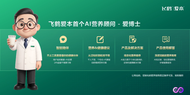 数据显示,中国60岁以上老年人约有1/3存在营养不良问题,很多人普遍被营养知识不足、缺乏专业营养指导等困扰。因此在服务端,飞鹤爱本也将推出首个深度融合AI能力的营养顾问——爱博士。他将由飞鹤爱本联合首都医科大学专家团,通过权威医学指南、大量临床案例学习及AI大模型进行系统性的专业训练后正式上线,能实时提供智能陪伴、个性化营养建议、产品及营养解决方案、产品使用解答等全场景服务,仿佛是把医院营养科“装进口袋”。飞鹤副总裁只强表示:“爱博士让专业的、定制化的营养指导真正触手可及。”