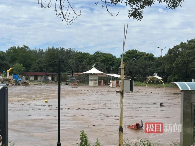 这位村民还提到,当时主干路上的水非常深,感觉像带着浪打过来。她家因地势较高,房内没有进水,但附近的世纪体育公园被淹得很严重。记者来到公园门口看到,由于公园内部地势较低,目前几乎全被一脚深的污泥覆盖,雪糕桶等杂物半掩在淤泥中。