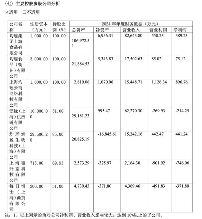 润盈生物目前只能说勉强盈亏平衡,均瑶健康财报显示,润盈生物2024年净资产-1.688亿元,营业收入1.5亿元,净利润441.2万元。