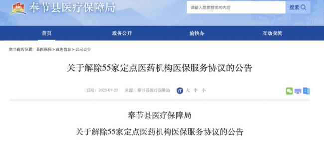 7月23日,重庆市奉节县医保局发布解除定点医药机构服务协议单位名单(第三批),涉及55家。