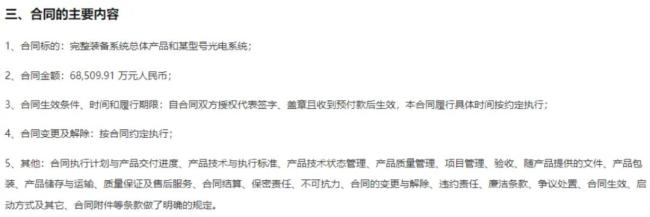 这个合同是公司继2024年3月19日披露完整装备系统总体型号项目在海外实现批量订货后,在海外市场取得的又一大批量订单。