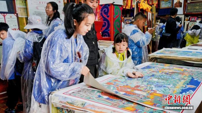 图为“粤藏同行新时代·石榴籽一家亲”活动现场学生体验绘制民族团结卷轴绘画。林芝市文旅局供图