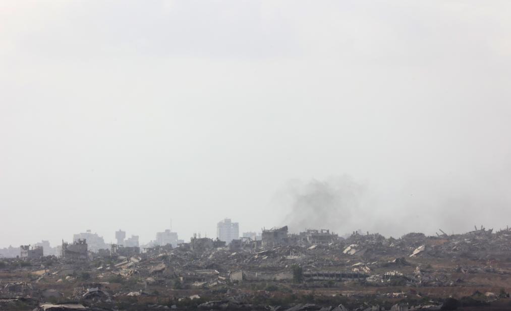 这是7月29日从以色列一侧拍摄的加沙地带遭袭后升起浓烟。新华社发(吉尔·科恩·马根摄)