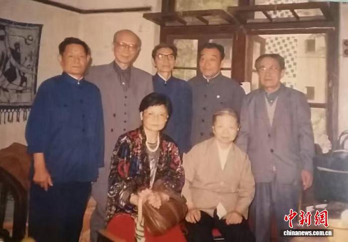 20世纪90年代末,索予明(第二排左二)回湖北江陵探亲,与同乡合影。(受访者供图)