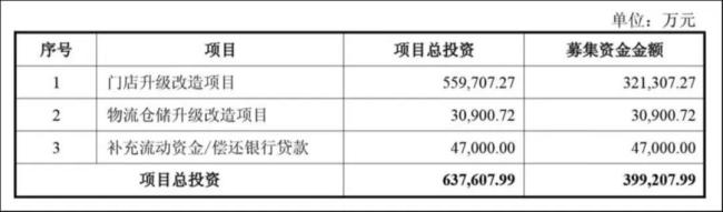 门店升级改造项目无疑为本次定增的核心项目。该项目总投资金额为55.97亿元,本次拟使用募集资金投入32.13亿元,约占定增募资总额的8成以上。