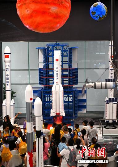 图为火箭升空演示吸引参观者。中新社记者 吕明 摄