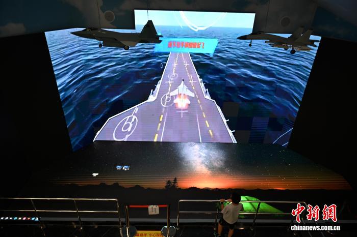 图为小朋友体验月球漫步游戏。中新社记者 吕明 摄