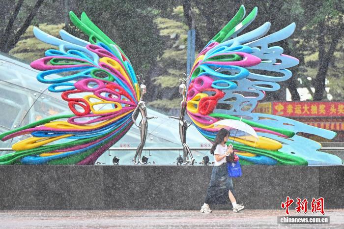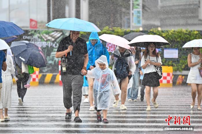 图为市民雨中出行。中新社记者 陈骥旻 摄
